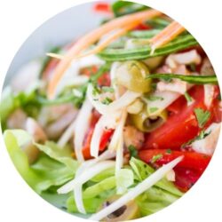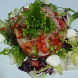 La más común de las ensaladas marroquíes es la llamada: “Chlada” preparada con tomate, pepino, cebolla, y en algunos casos pimiento verde., aceite, pimienta, algo de vinagre y cilantro fresco picado